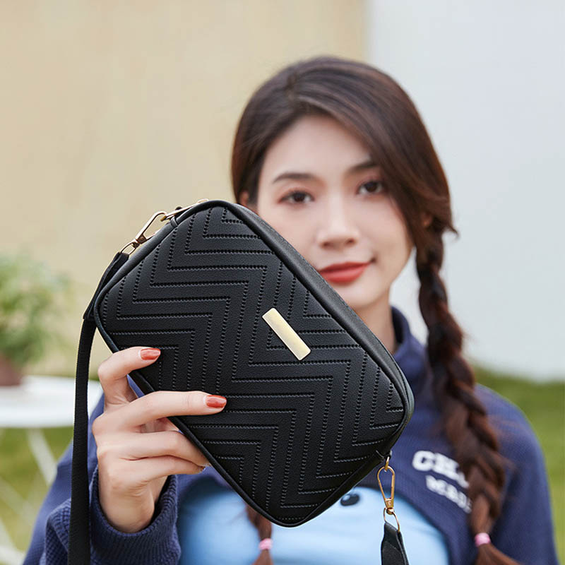Travel light and stay stylish with this trendy wave-patterned crossbody bag. Designed for the minimalist fashionista, this compact square bag is the ultimate accessory for days when you only need the essentials. The bag features a chic wave stitched design (chevron pattern) on high-quality material, giving it a modern and premium look. Weighing only 150gm, it is incredibly lightweight, so you can carry it all day without feeling weighed down. See more